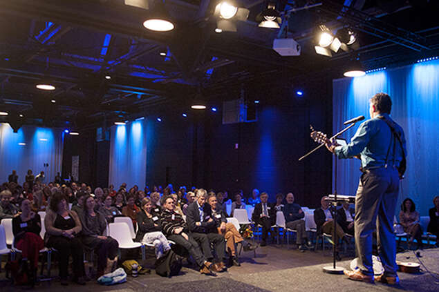 De organisatie was blij met het bijzondere decor van De Rijtuigenloods. ''De omgeving verrast en nodigt uit om verder te denken dan je gewend bent.''